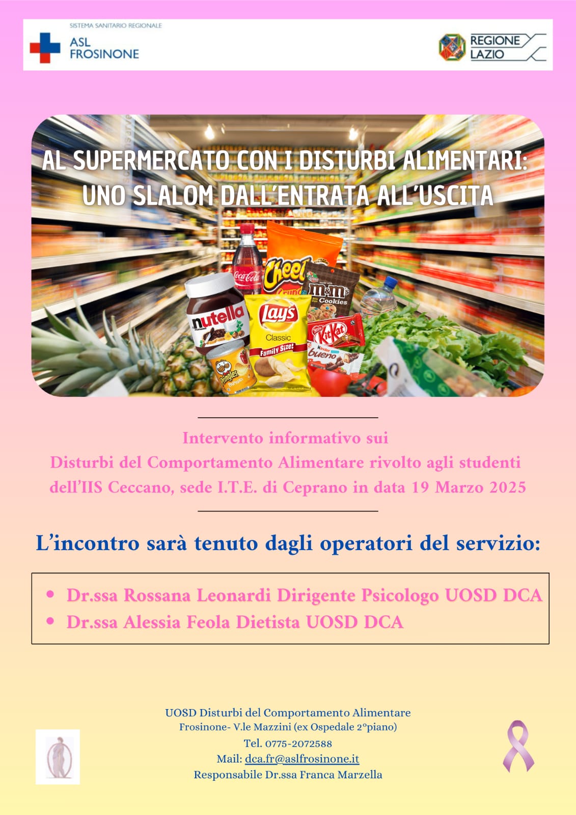Evento informativo che terremo il 19 marzo c/o l’ITE di Ceprano – Sensibilizzazione dei ragazzi sui disturbi del comportamento alimentare.