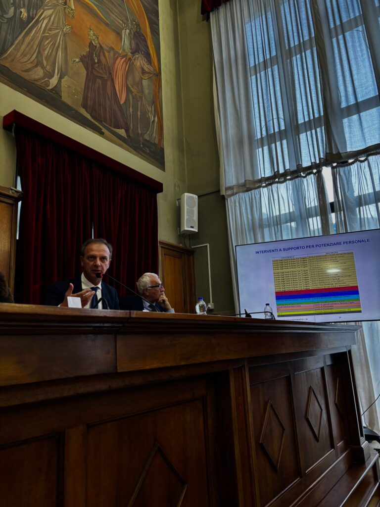 Questo pomeriggio il Direttore Generale della ASL di Frosinone Arturo Cavaliere, affiancato dalla Direttrice Sanitaria Maria Giovanna Colella e dal Direttore Amministrativo Giovannino Rossi, ha partecipato al Consiglio comunale straordinario di Cassino dedicato allo stato della sanità locale e al futuro dell’ospedale “Santa Scolastica”. Presente la Presidente della Commissione Sanità Alessia Savo. Un confronto aperto, istituzionale e costruttivo con il territorio, nel quale la Direzione strategica ha condiviso dati, progetti e risultati concreti già conseguiti a partire dal 1° aprile 2025, giorno di insediamento della nuova governance aziendale.