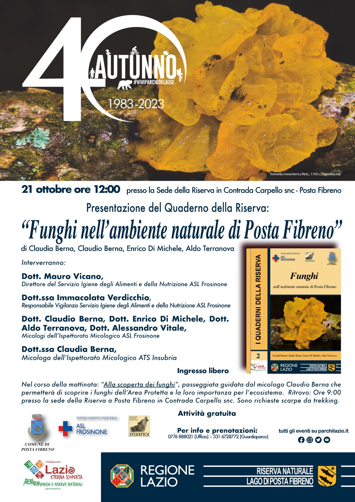 - Frosinone (unos 20 participantes por curso) en las instalaciones de la sala de formación en el antiguo hospital de Viale Mazzini, a cargo del micólogo Dr. Enrico Di Michele;