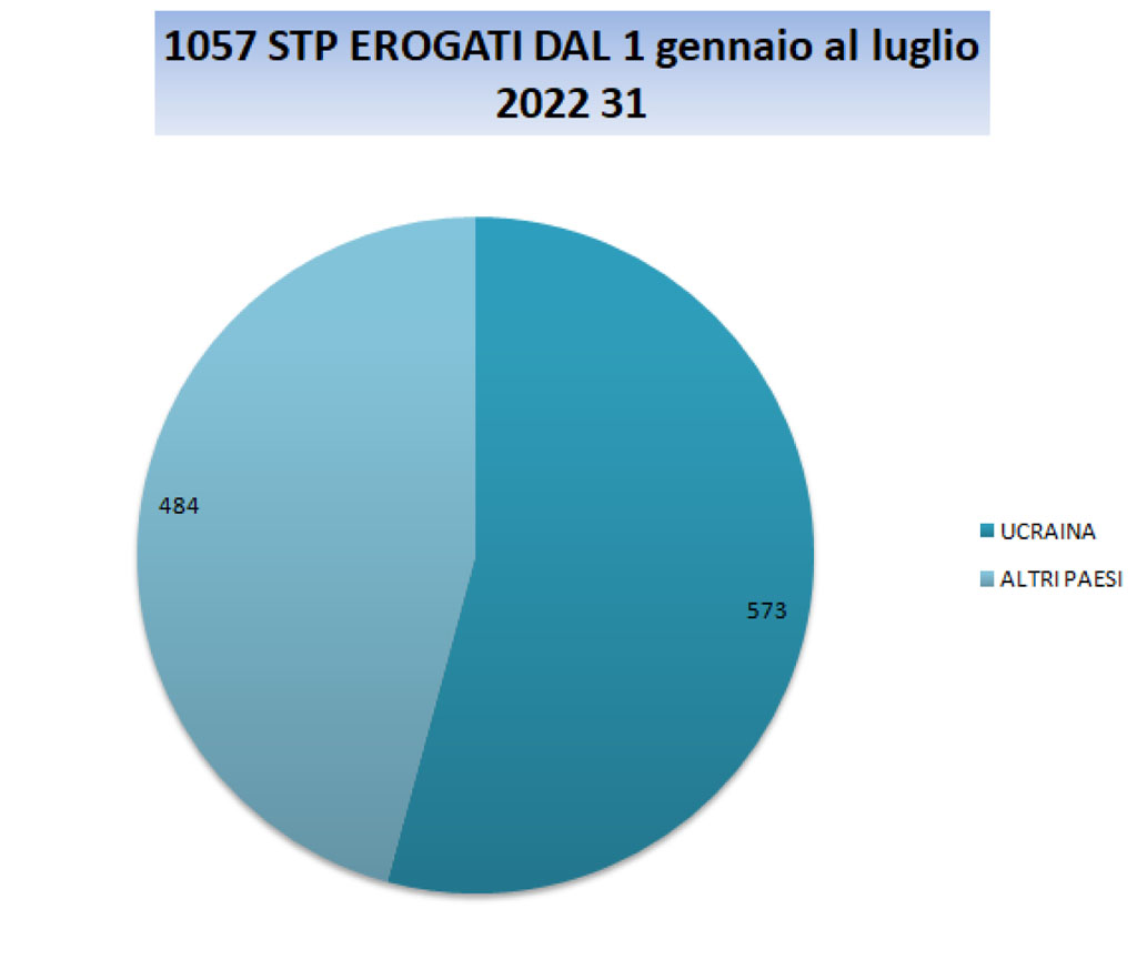 De 1 de janeiro a 31 de julho, foram emitidos 1057 Cartões de Saúde STP (estrangeiros temporariamente presentes), dos quais cerca de 55% (573) diziam respeito a refugiados ucranianos, enquanto os restantes 45% (484) requerentes de asilo de outras nacionalidades (predominantemente africanos subsaarianos, egípcios e bengalis).