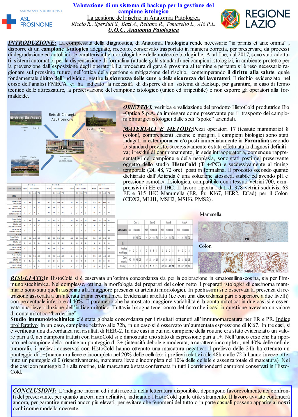 A UOC de Anatomia Patológica da ASL de Frosinone, dirigida pelo Prof. Piero Luigi Alò, no percurso de formação contínua em Medicina e atividade de investigação, levada a cabo pela Direção Médica e Biólogos sem nunca esquecer a valiosa contribuição dos Técnicos de Saúde do Laboratório Biomédico tem participado com alguns dos seus colaboradores, produzindo o seu próprio contributo.