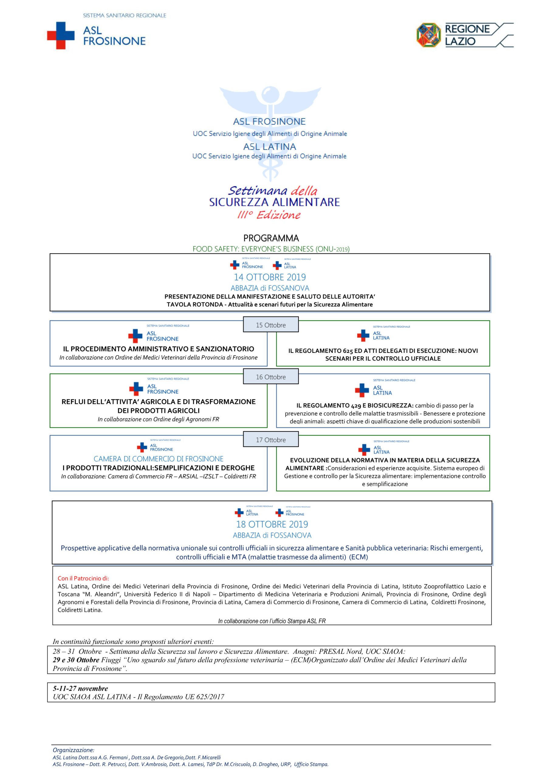 L’edizione 2019 è caratterizzata dal coinvolgimento nell’organizzazione dei Servizi Veterinari della ASL di Latina oltre che della ASL di Frosinone, condizione che ha contribuito ad estendere l’ambito di interesse e di risonanza a tutto il basso Lazio.